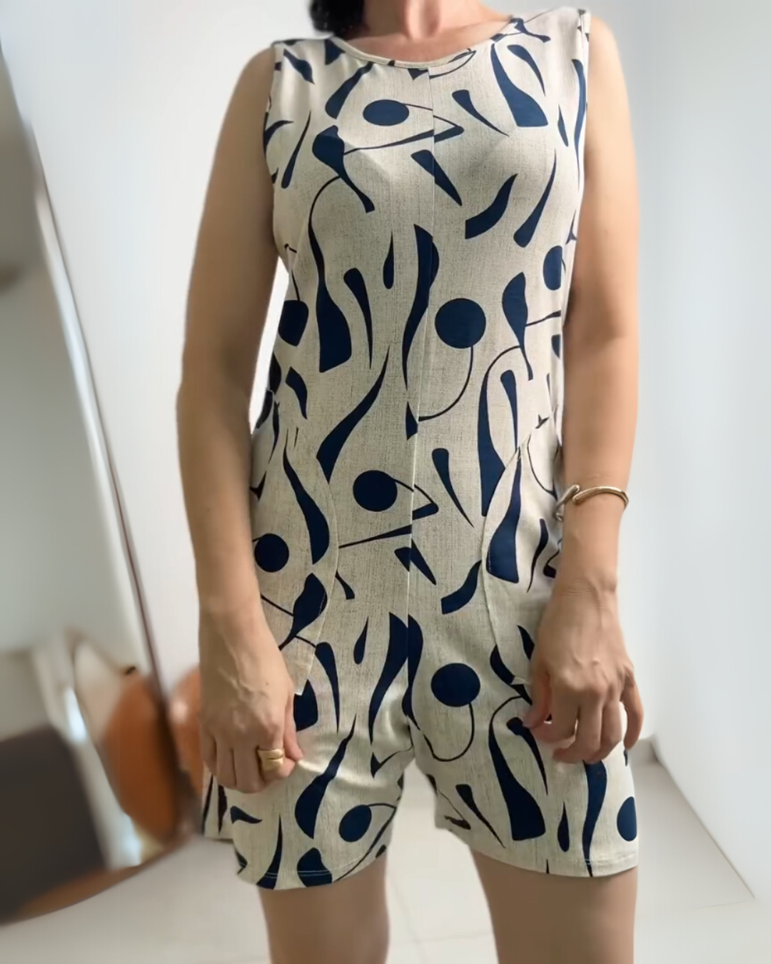 Abstract Noir Linen Cotton Stretchable Playsuit – Navy Blue
