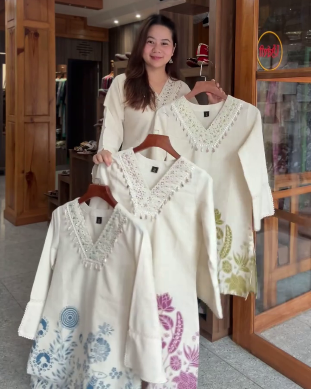 Navya – Ivory Cotton Kurta Set with Shell Neck & Floral Printed Pants - Black