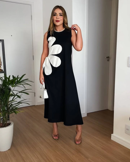 Regular price Rs. 1,699.00Regular priceUnit price / perRs. 3,699.00Sale price Rs. 1,699.00SaleLira Bloom Midi Dress with Statement Appliqué Floral - Midnight Black