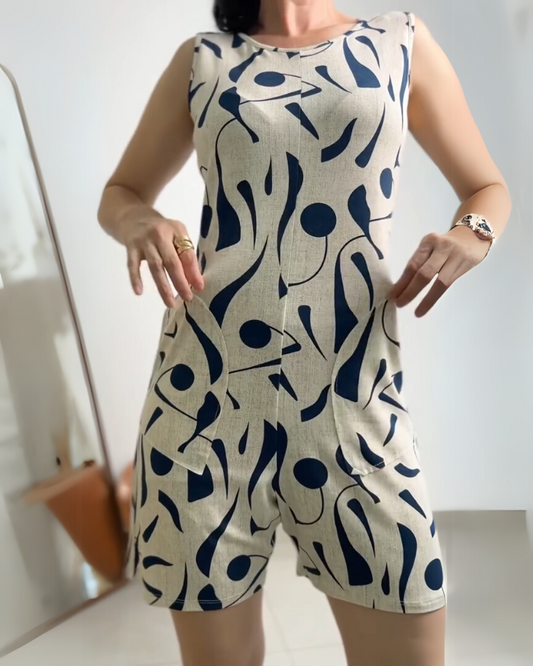 Regular price Rs. 2,499.00Regular priceUnit price / perRs. 2,899.00Sale price Rs. 2,499.00SaleAbstract Noir Linen Cotton Stretchable Playsuit – Navy Blue